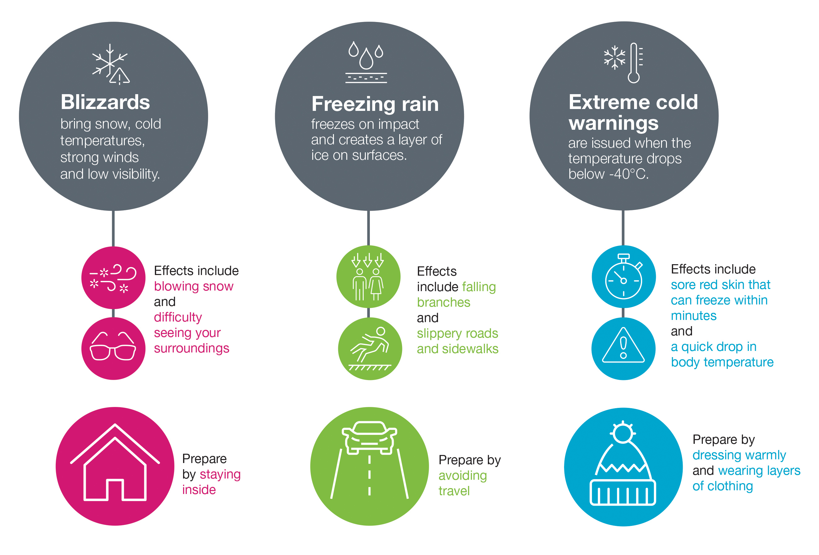 - Extreme cold may occur with other weather, such as blizzards, ice storms or ice fog, and pose a risk of hypothermia or frostbite.