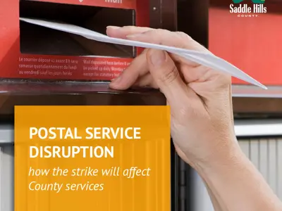 Postal service is currently disrupted in Saddle Hills County due to the Canada Post Strike. This may affect ratepayers abilities to receive utility bills and other County correspondence in the mail.