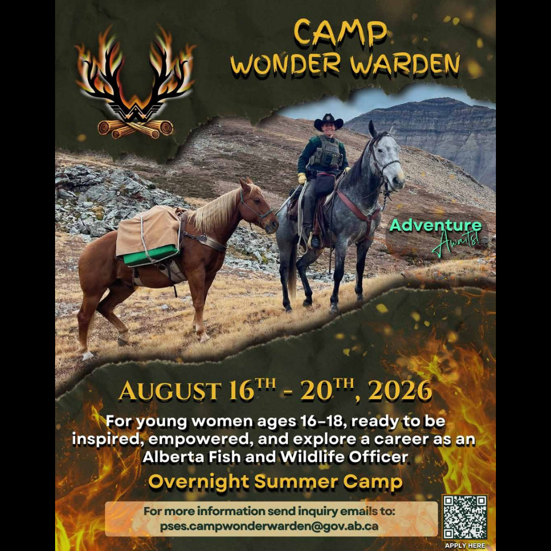 “Camp Wonder Warden,” an overnight summer camp running August 16-20, 2026, is designed for participants aged 16 to 18 who are interested in becoming Alberta Fish and Wildlife officers.