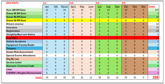 Overall, those stopped for speeding ranged from 20 km/h to 43 km/h over the posted limit. The average speed over the posted limit for 2025 to date, is 23 km/h.