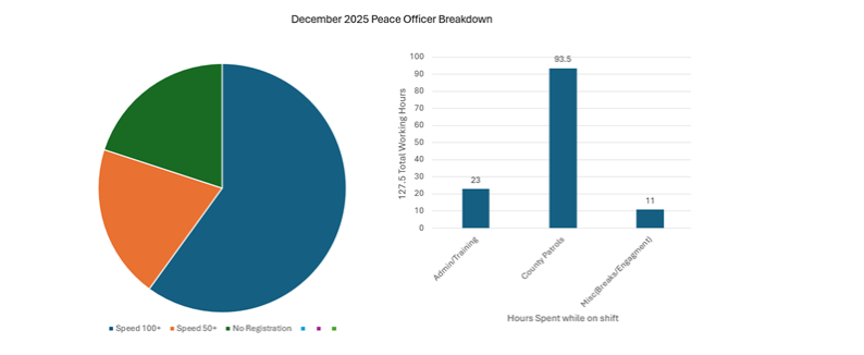 During December, Wayne's work was focused mainly on highways and areas that had issues reported by staff and members of the county for bylaw complaints as well as checking the road conditions and the Burn Permits.