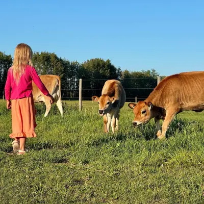"This photo shows a young girl gentling some Jersey calves. Immersing the next generation in agriculture and finding the beauty in it is the key to keeping small farms alive and continuing for years to come in northern Alberta."